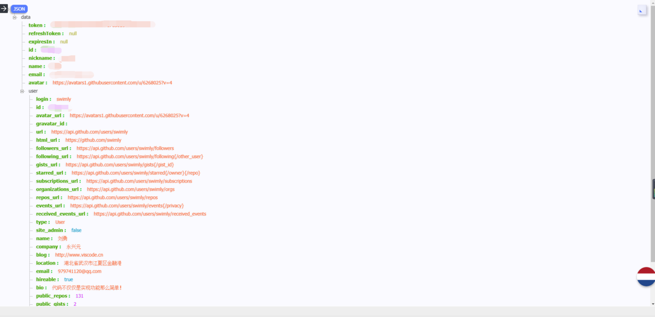 便能成功获取到认证的用户信息,可以从中抽取需要的信息存储到数据库即可!