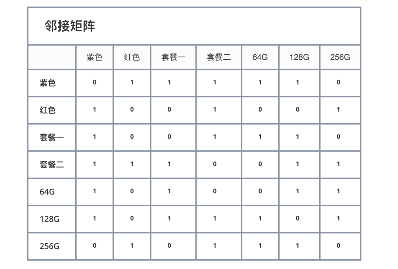 * 根据可选规格组合填写邻接矩阵的值