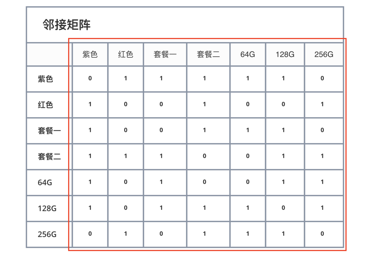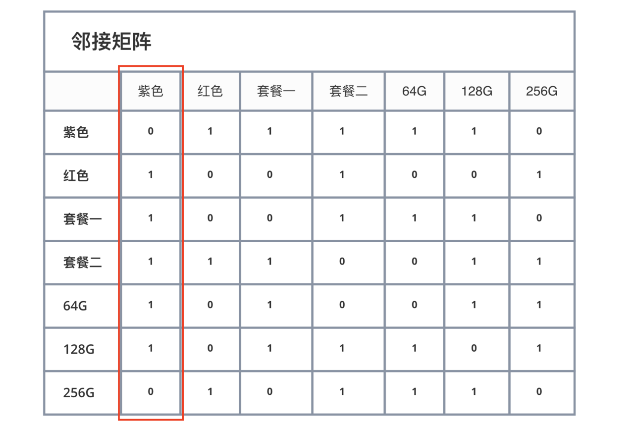 创建多规格选择邻接矩阵