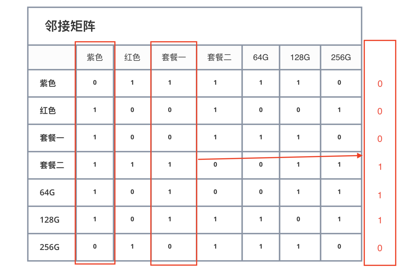 实践证明:大学学的东西是真的有用的。我们通过图,解决了商品多规格选择的难题。在求解可选规格的时候,时间复杂度由原来的O(n²)变成了O(n)。不过值得一提的是,采用邻接矩阵来存储图,空间复杂度就变成了O(n²)了,同时也存在浪费空间的问题,但是图肯定不止有邻接矩阵这一种存储方法,我们还可以用链表来存储图,小伙伴们可以自己去试一试。另外如果用链表来存储图,空间复杂度会变低,但是时间复杂度会变高,具体如何选择,就看小伙伴们自己权衡了。