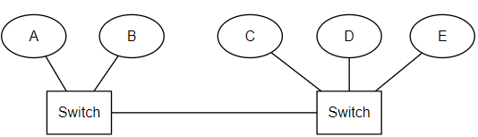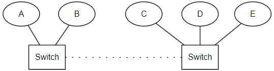 考虑下面这种情况,原集群由 A、B、C、D、E 组成,主节点是 A。当两个交换机之间连接中断之后,A、B 不能再与C、D、E 进行通信,形成了两个网络分区。A、B 组成的集群中 master 仍然是 A,而C、D、E 会选出一个新的 master,客户端访问 A、B 或者高 C、D、E 时数据不一致。
