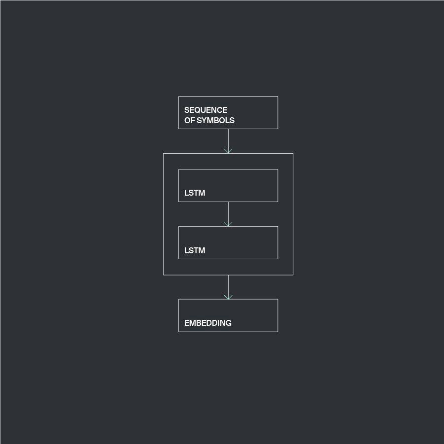 一个任意长度的 one-hot 向量序列表示一个词中的字符序列,经过两个 LSTM 层处理之后,会输出这个词的嵌入向量。