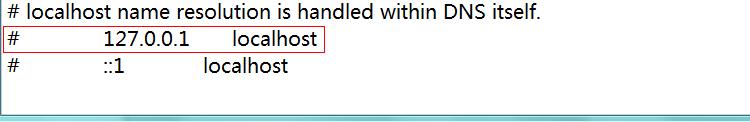 进入目录:C:\Windows\System32\drivers\etc下,有个hosts文件,双击该文件选择记事本打开即可,然后默认倒数第二行的localhost是注释的,去掉前面的#号,强制让localhost重定向到127.0.0.1即可