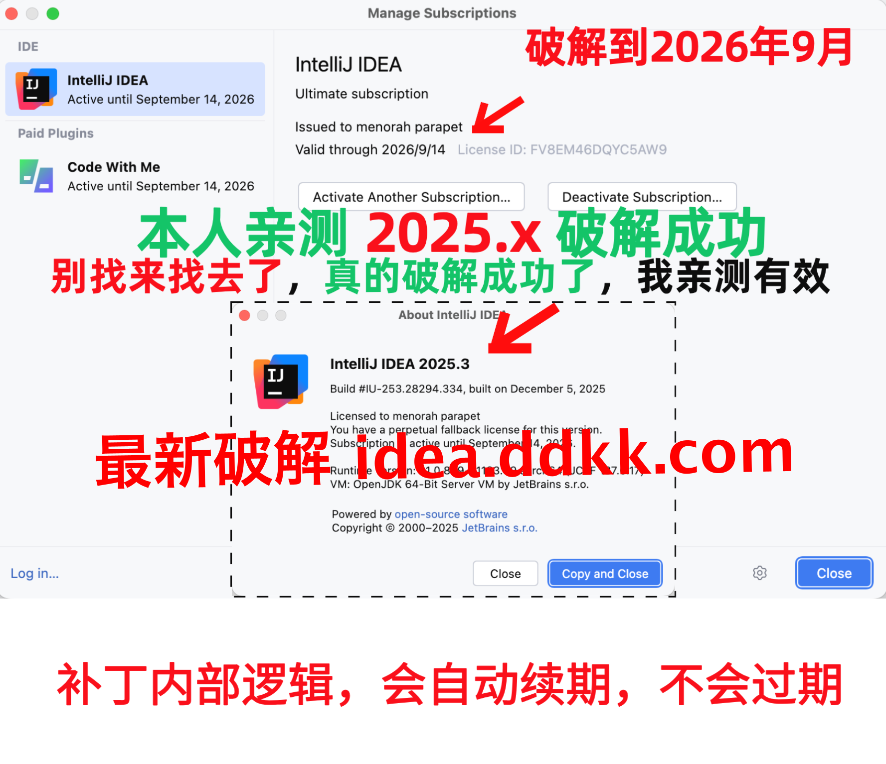IDEA 2025.3破解补丁,不要移动位置,不要删除【否则破解失败】