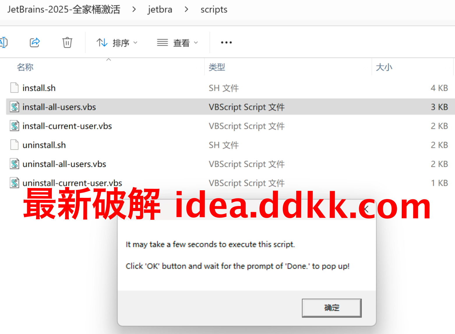脚本可以自动在idea.vmoptions配置文件引入破解补丁,针对小白,方便了很多。