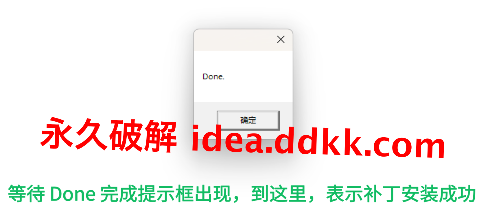 提示框会告诉你,补丁安装大概需要几秒到一分钟,点确定之后,等着Done提示框弹出来,看到这个就说明补丁装好了。