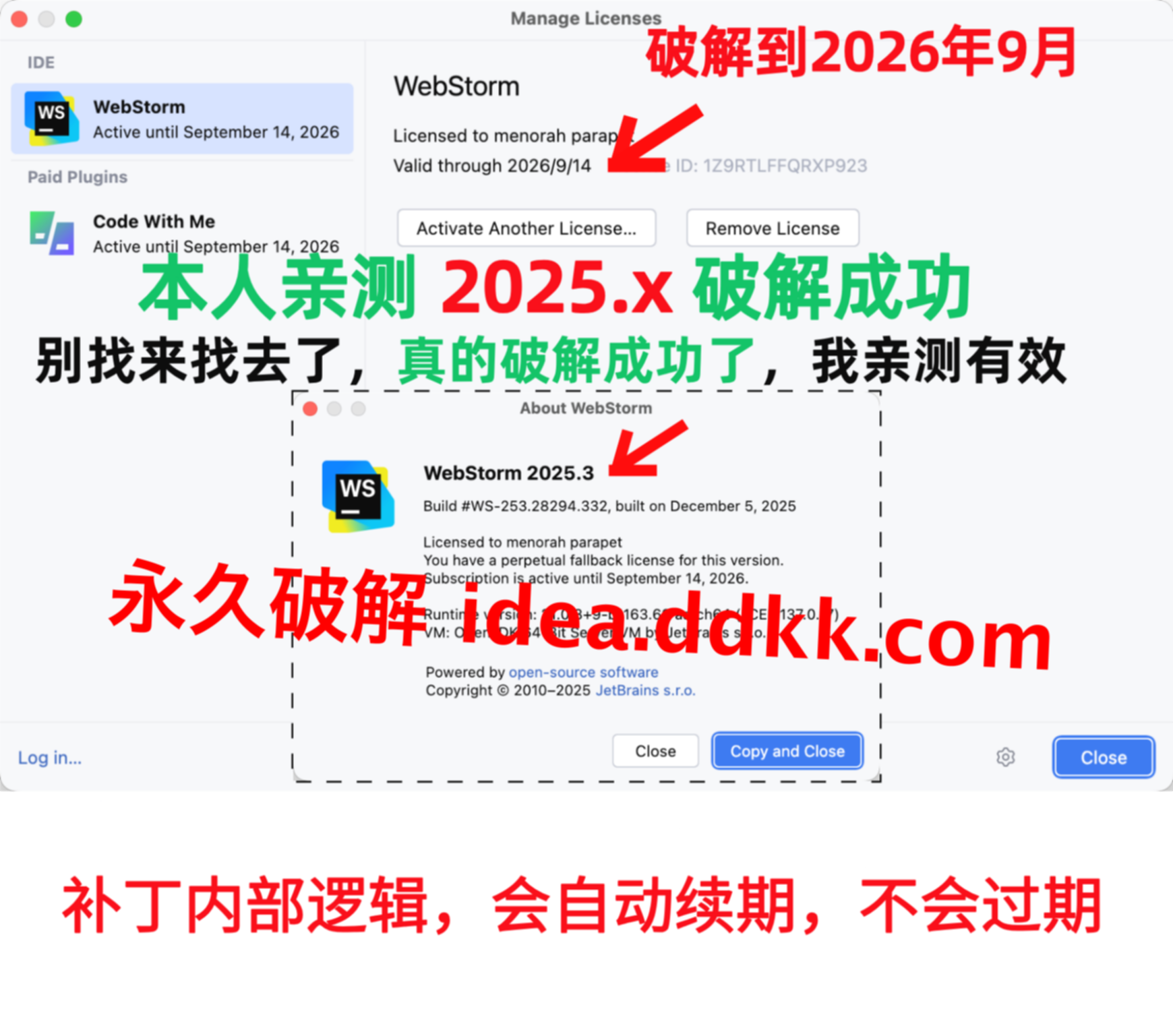 整个流程下来,也就十来分钟的事儿;清理旧配置、装补丁、输激活码,三步走完就搞定了。记住几个关键点:补丁路径必须纯英文、别删补丁文件夹、激活码别搞混产品。只要照着教程一步步来,基本上不会翻车;WebStorm 这么好用的工具,破解了之后放开手用,写代码效率直接起飞。