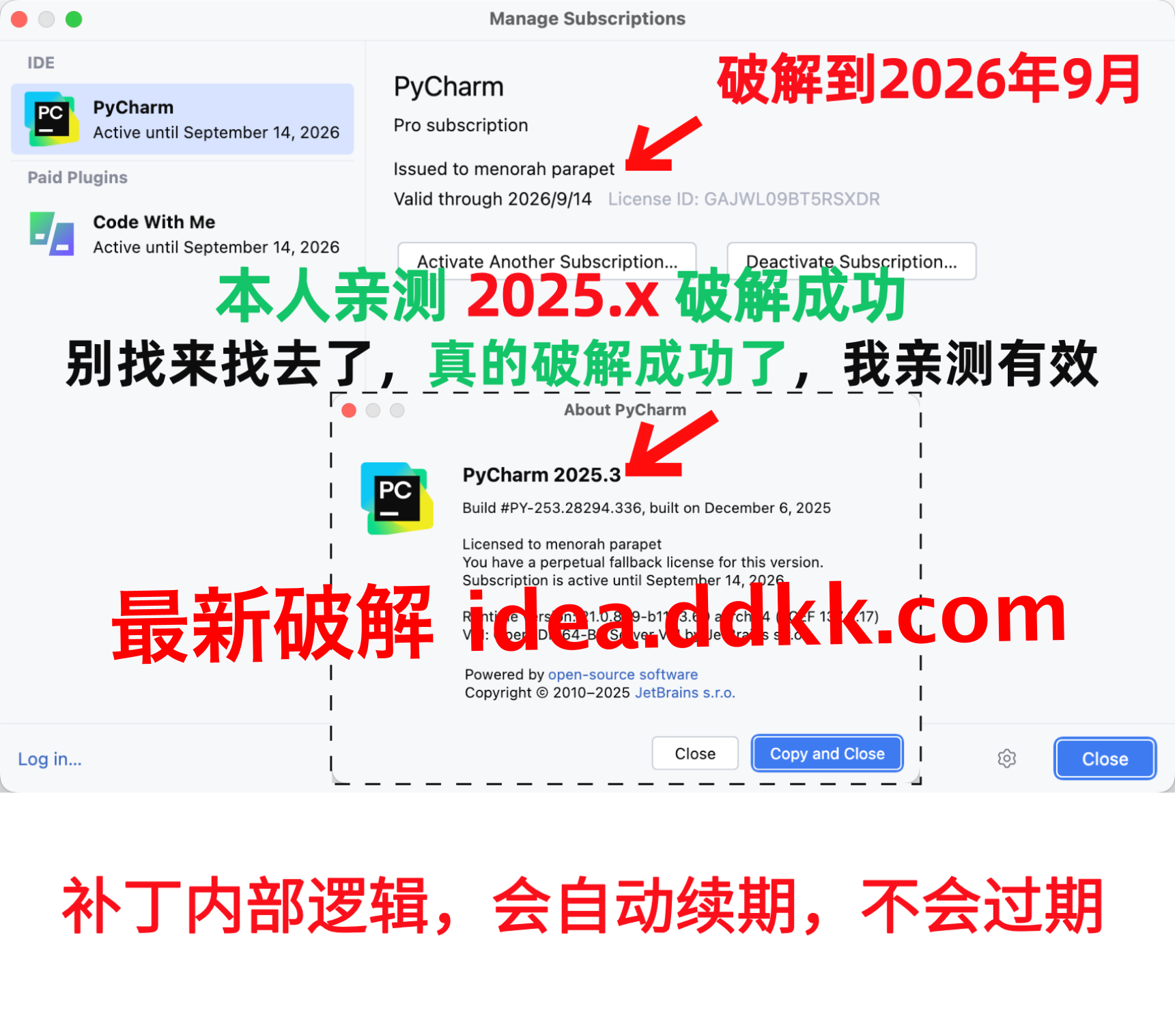 PyCharm 2025.3 破解补丁,不要移动位置,不要删除【否则破解失败】