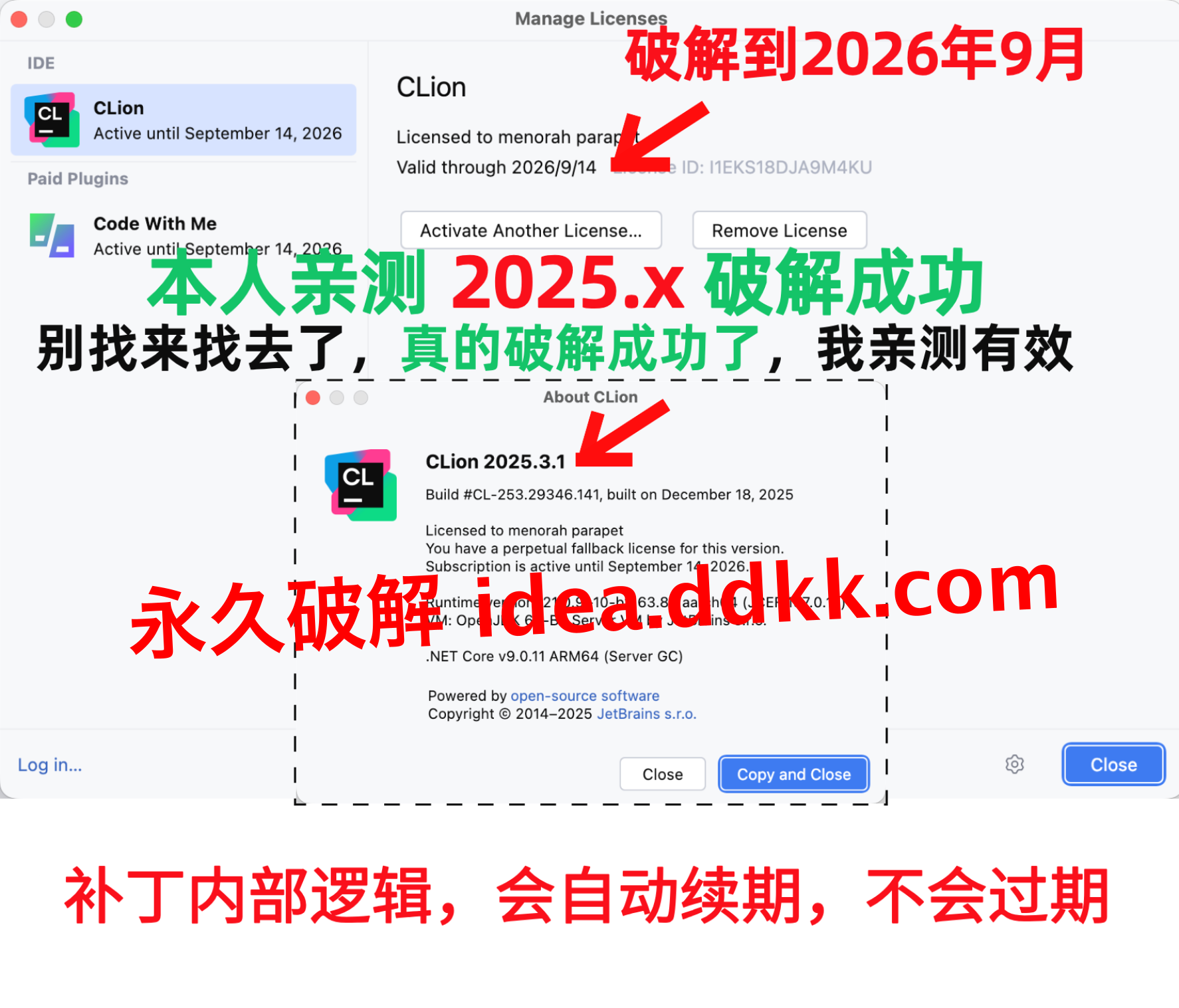 CLion 2025.3.1破解补丁,不要移动位置,不要删除【否则破解失败】