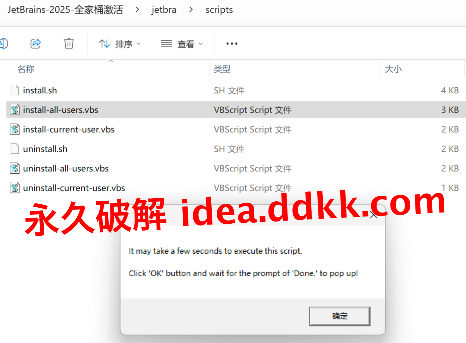 解压补丁包后,你会看到scripts文件夹。里面存放着不同系统平台的安装脚本,Windows系统使用install-current-user.vbs,Mac和Linux系统使用install.sh,这些脚本会自动把补丁配置添加到clion.vmoptions文件中,你不用手动去翻找配置文件,也不需要手动编辑,对于不太熟悉系统配置的朋友来说,这个设计确实很省事。