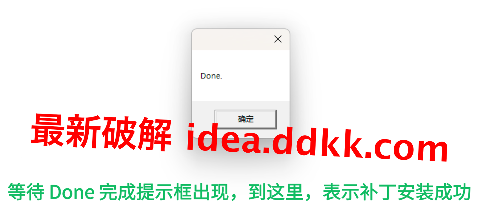 看到Done提示框,就说明补丁已经成功写入CLion的配置文件了。此时可以关闭这个提示框,然后重新启动CLion,准备输入激活码。