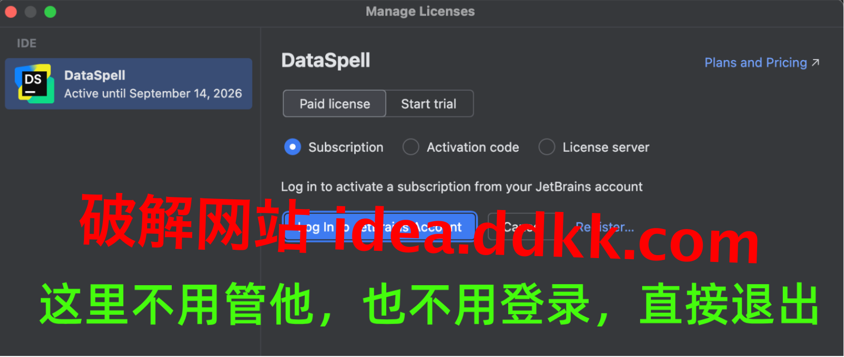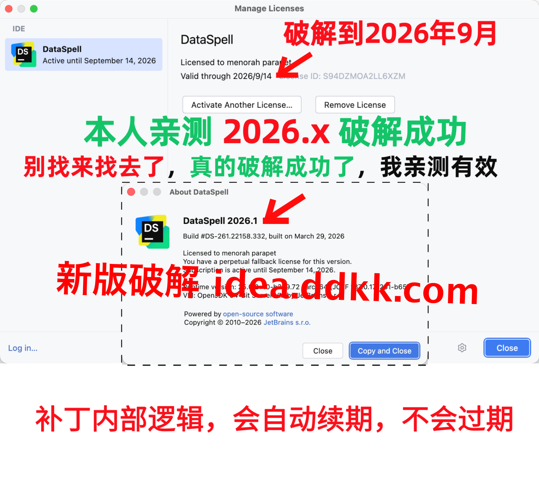 行吧,那就自己搞破解。折腾了一圈,DataSpell 2026.1 已经整完了,全程截图,下面跟着我做就完事。
