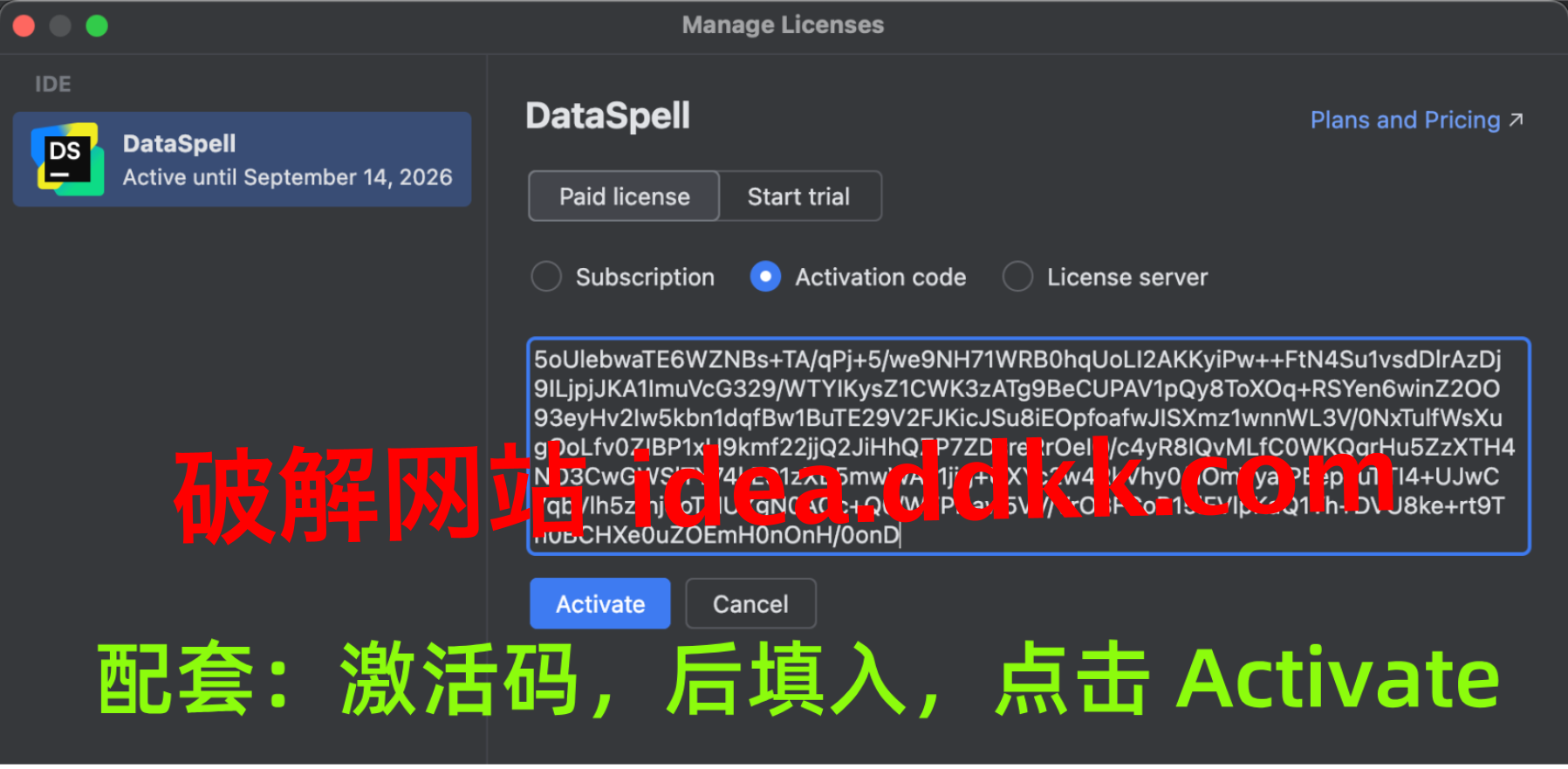补丁装好了,重新打开 DataSpell 输入激活码