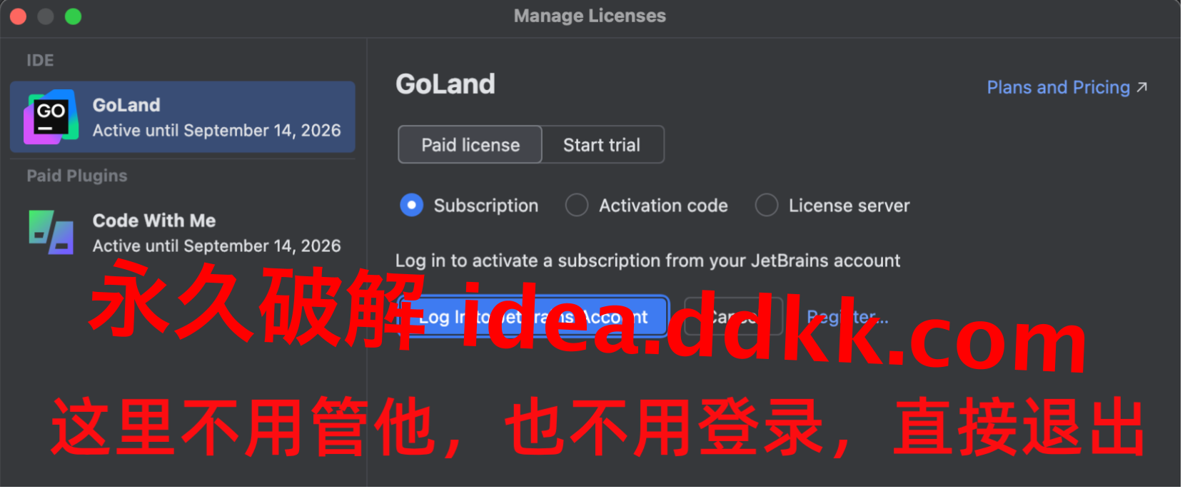 GoLand装好后第一次启动会弹出登录界面,这时候千万别急着登录
