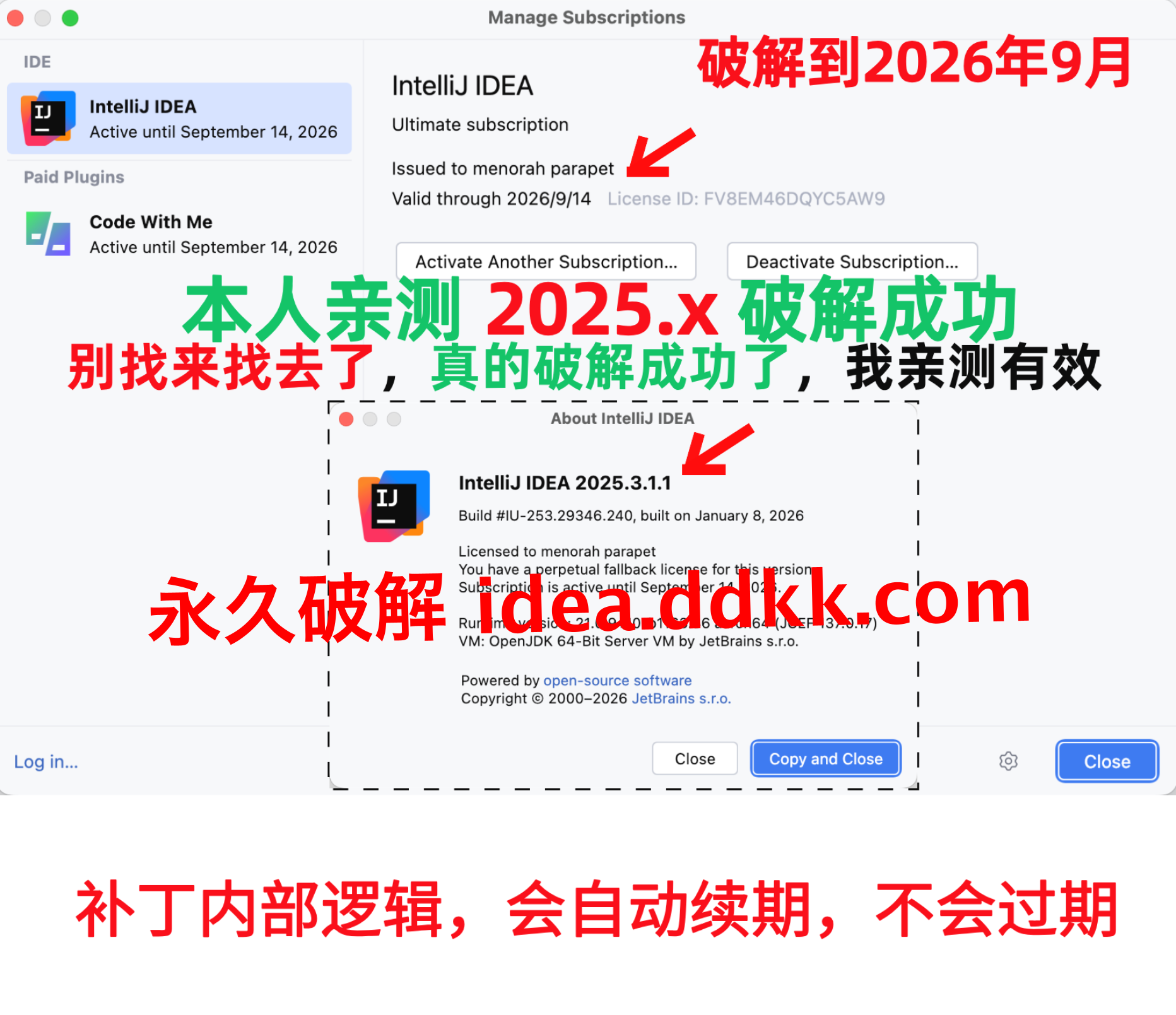 IDEA 2025.3.1.1 破解补丁,不要移动位置,不要删除【否则破解失败】