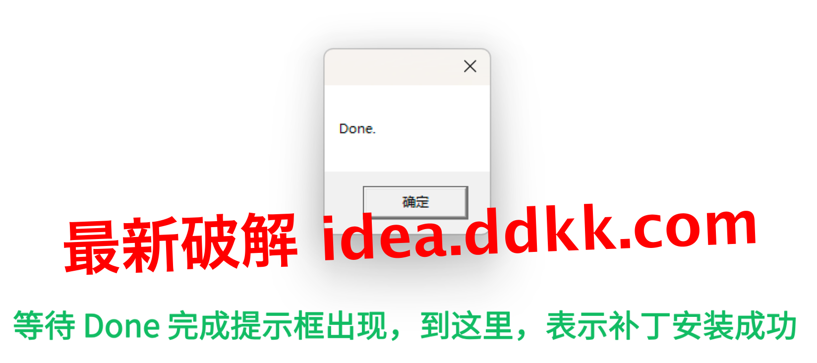 看到Done提示框,补丁就装好了。这时候可以关闭脚本窗口,然后打开IDEA,准备输入激活码。