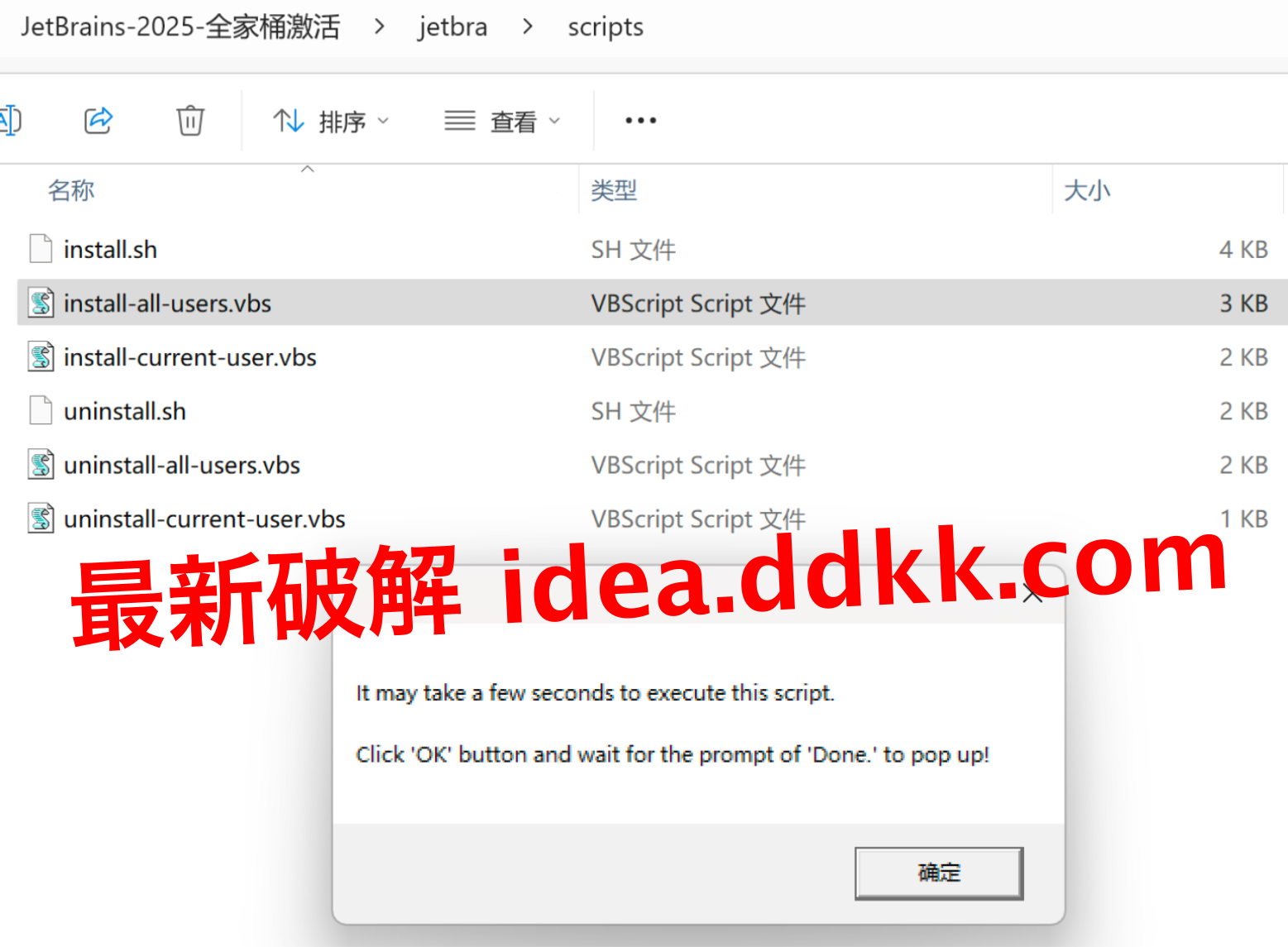补丁包里有scripts文件夹,里面放了不同系统的安装脚本,Windows用vbs文件,Mac和Linux用sh文件,按自己系统选就行;这些脚本会自动修改vmoptions配置文件,把补丁路径加进去,不用手动改,对小白很友好