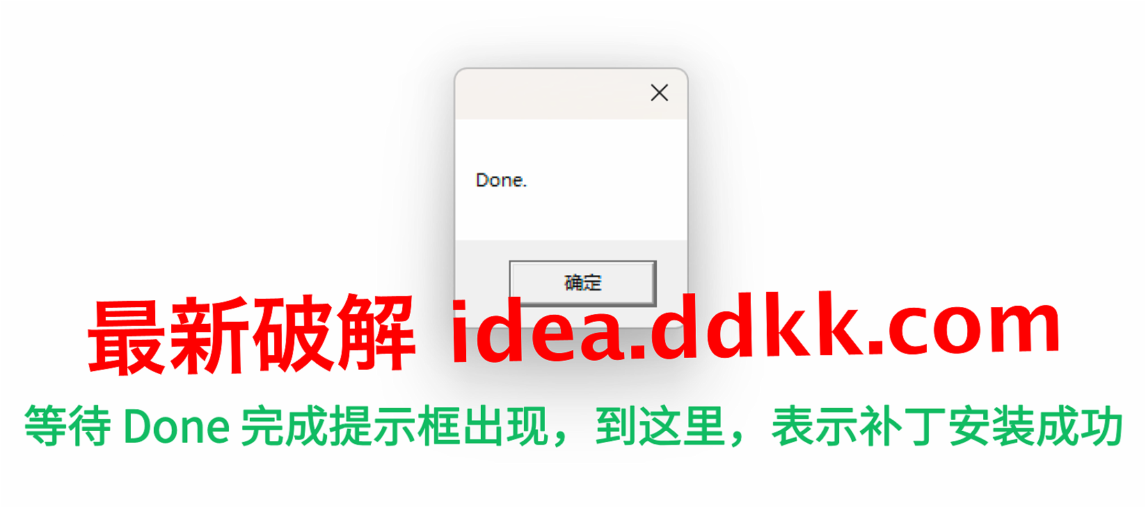 看到Done提示框弹出来,就说明补丁装好了,这时候可以点确定关闭;我鹏磊提醒下,有些兄弟性子急,看到进度条不动就以为卡住了,直接关掉窗口,结果补丁没装完,后面激活就失败了;所以一定要等Done提示出来,再继续下一步
