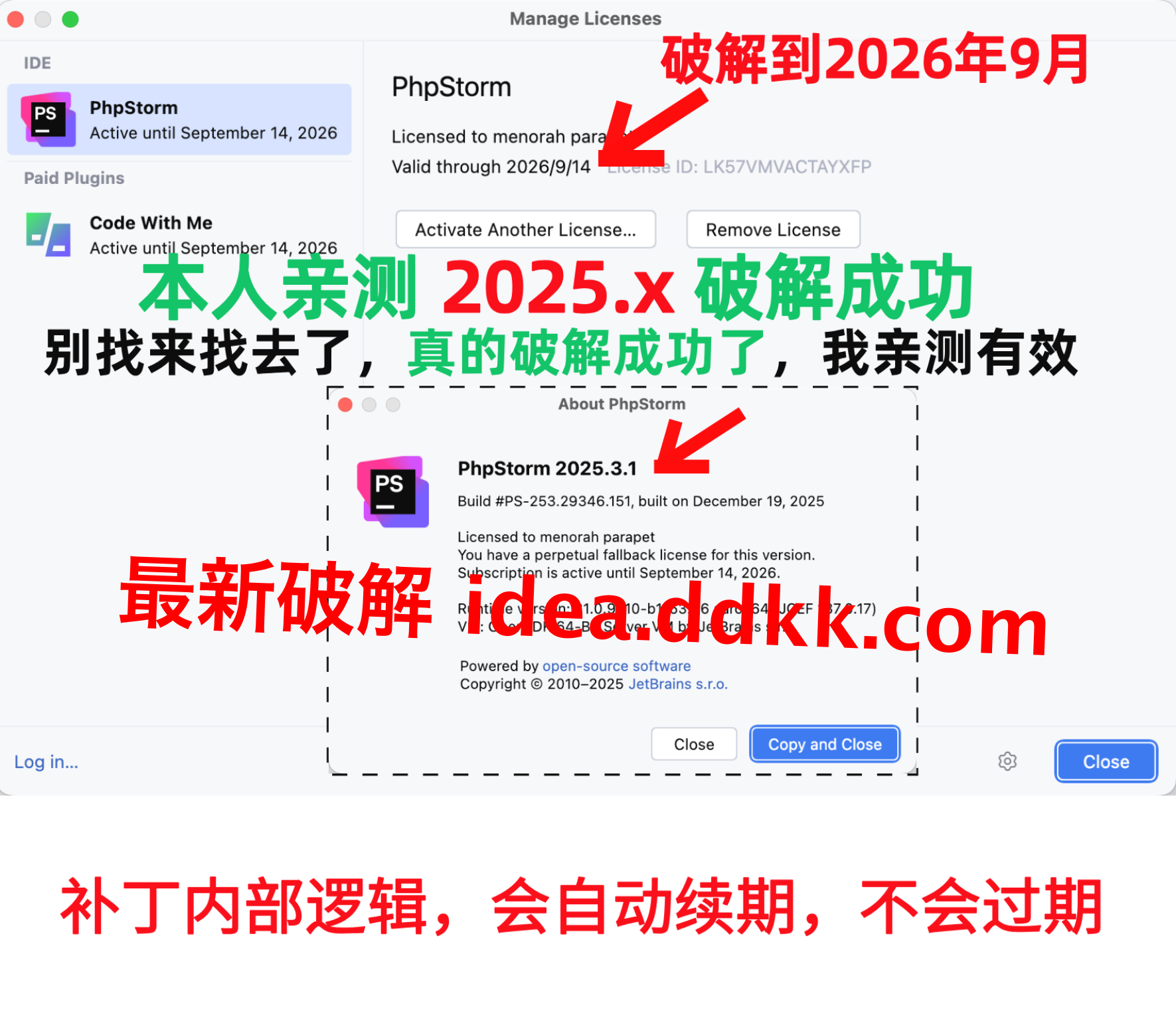 PhpStorm 2025.3.1 破解补丁,不要移动位置,不要删除【否则破解失败】
