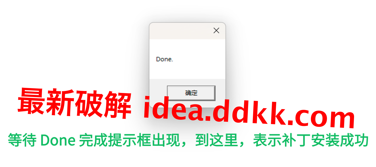 脚本执行速度挺快的,通常几秒就能跑完,慢的话也就一分钟左右,等看到Done这个完成提示框跳出来,就表示补丁已经成功写入配置文件了,接下来就可以去填激活码了,耐心点等它执行完就行