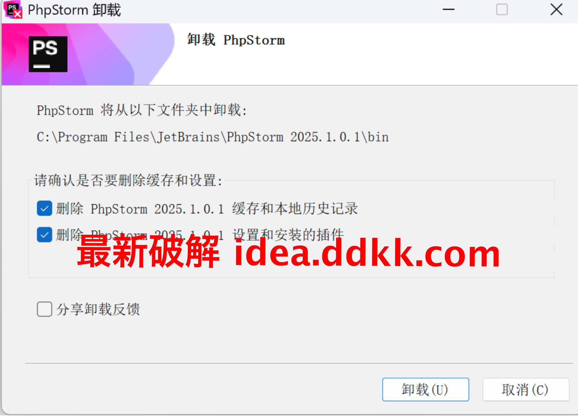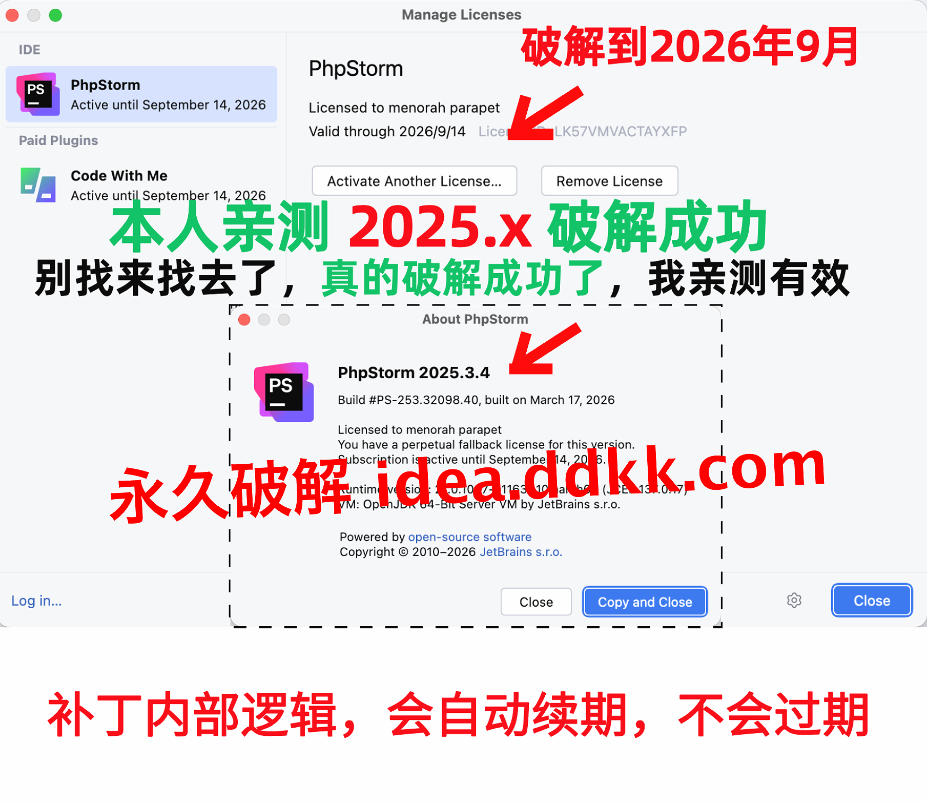 PhpStorm 2026.1 破解补丁,不要移动位置,不要删除【否则破解失败】