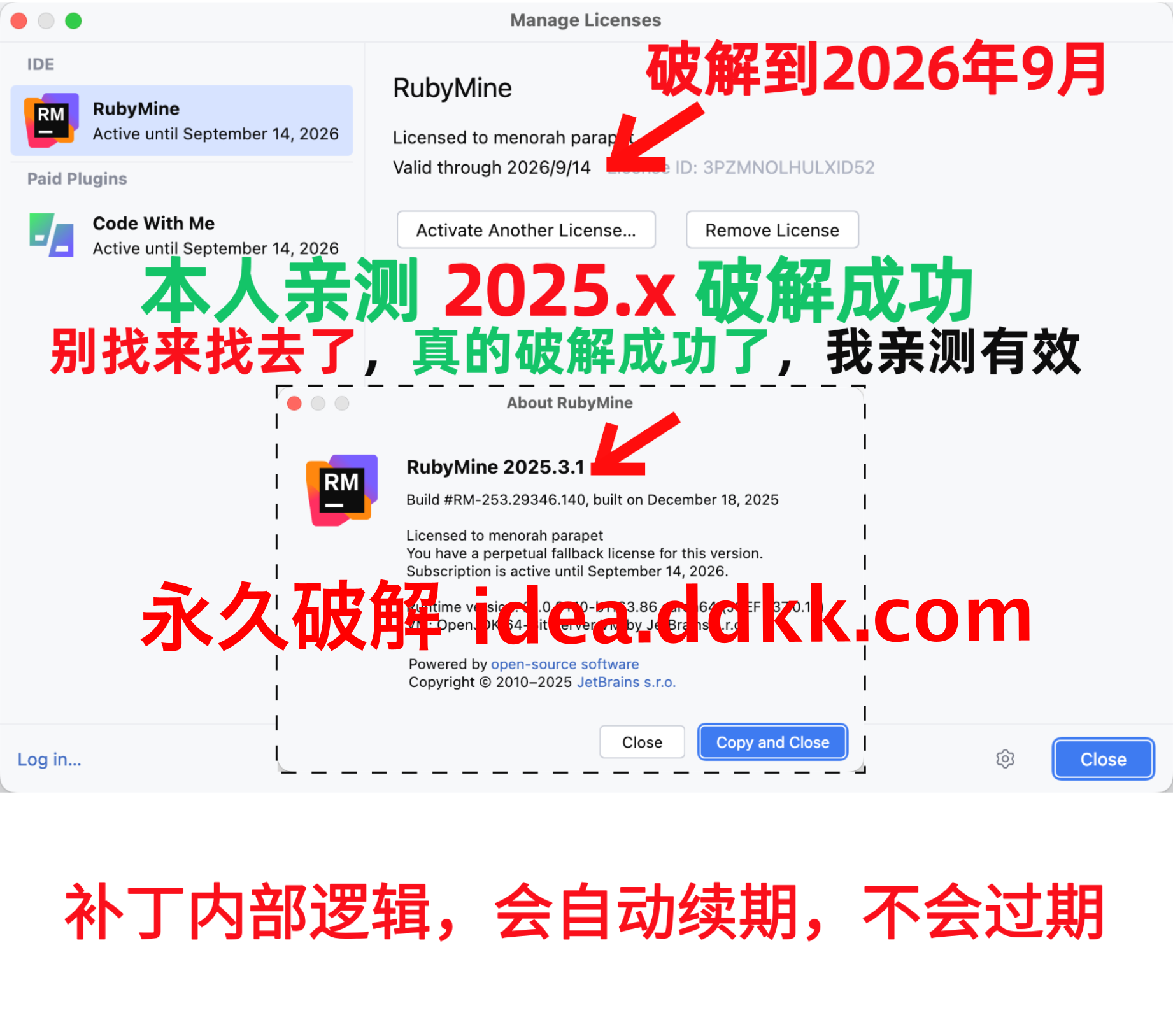 RubyMine 2025.3.1 用的那个破解补丁,千万别挪位置也别删【挪了删了就激活不了了】
