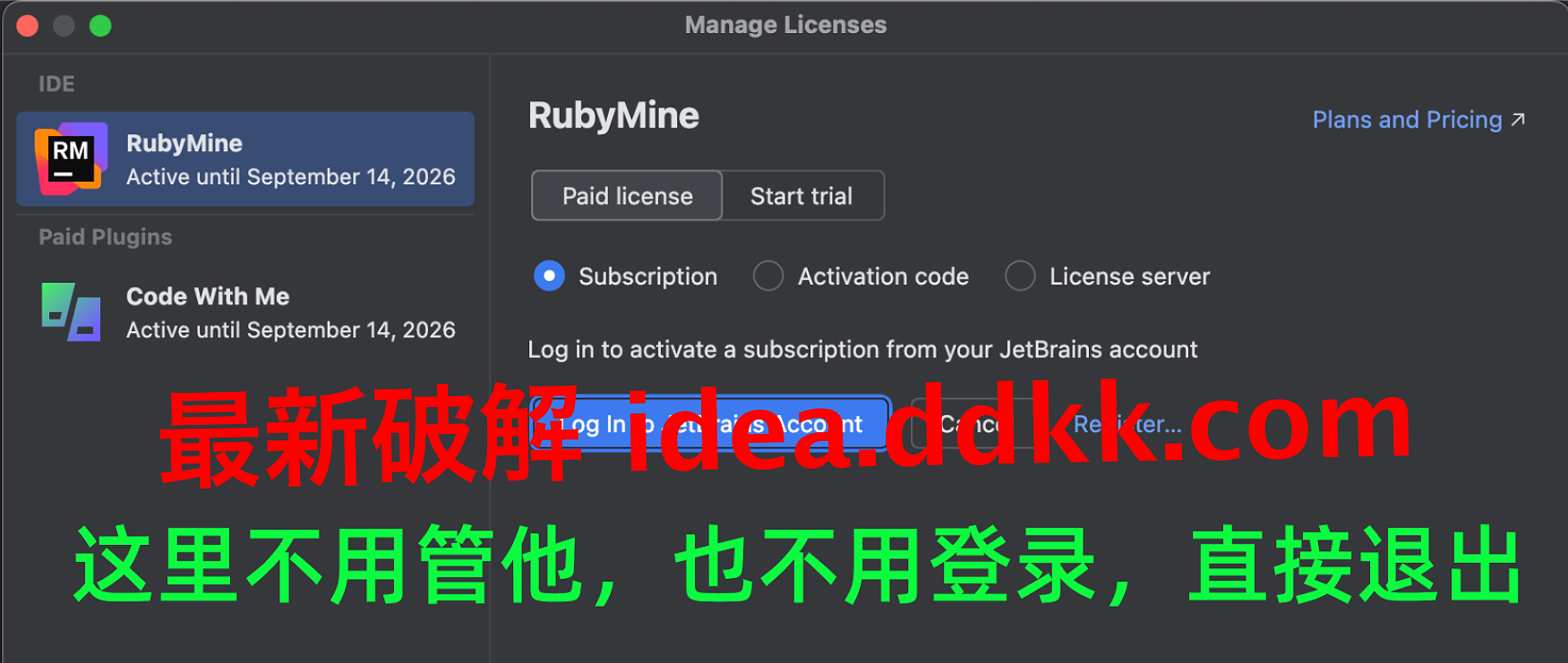 Jetbrains 每个产品,对应激活码都不一样