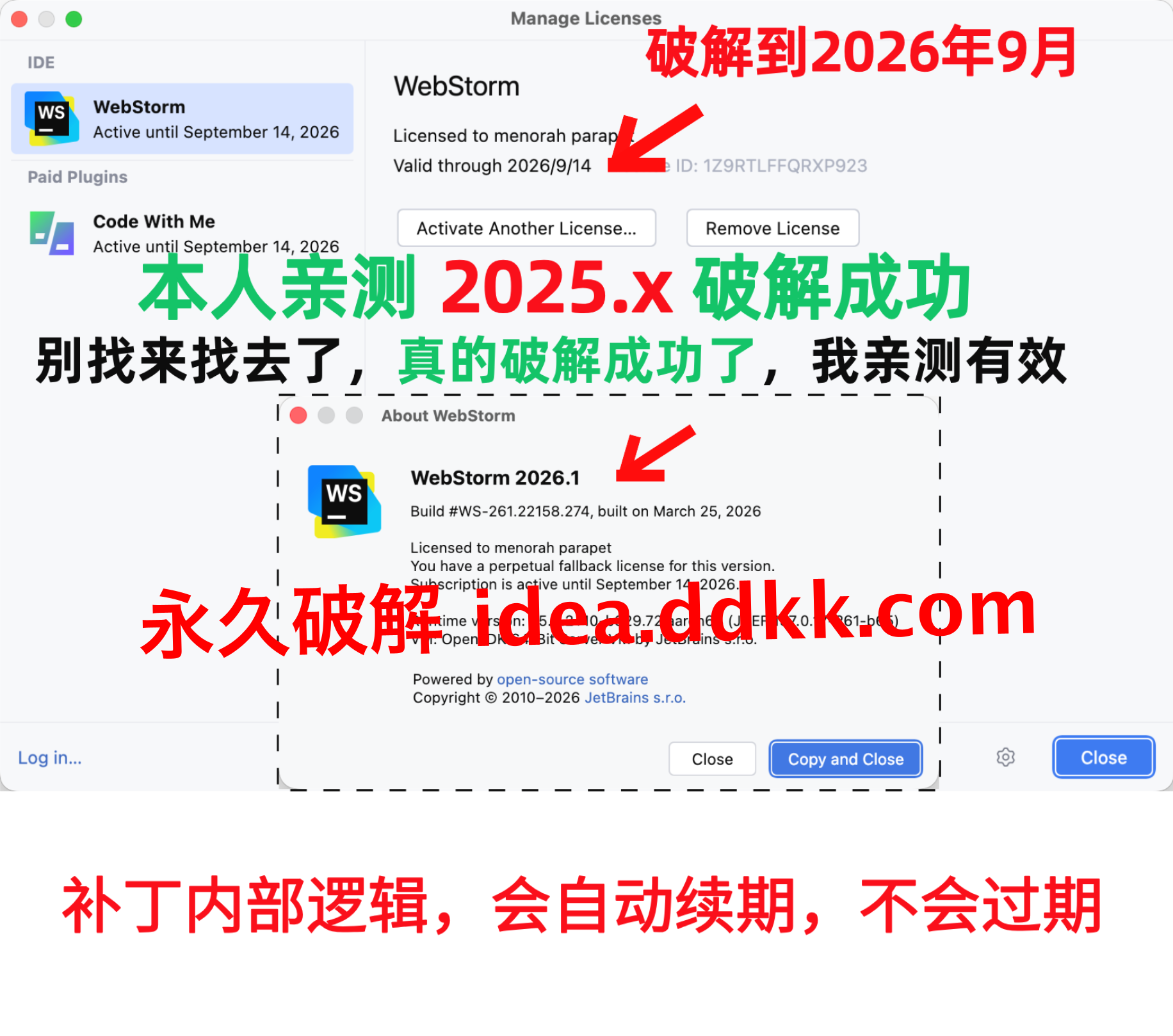 WebStorm 2026.1 破解补丁,不要移动位置,不要删除【否则破解失败】