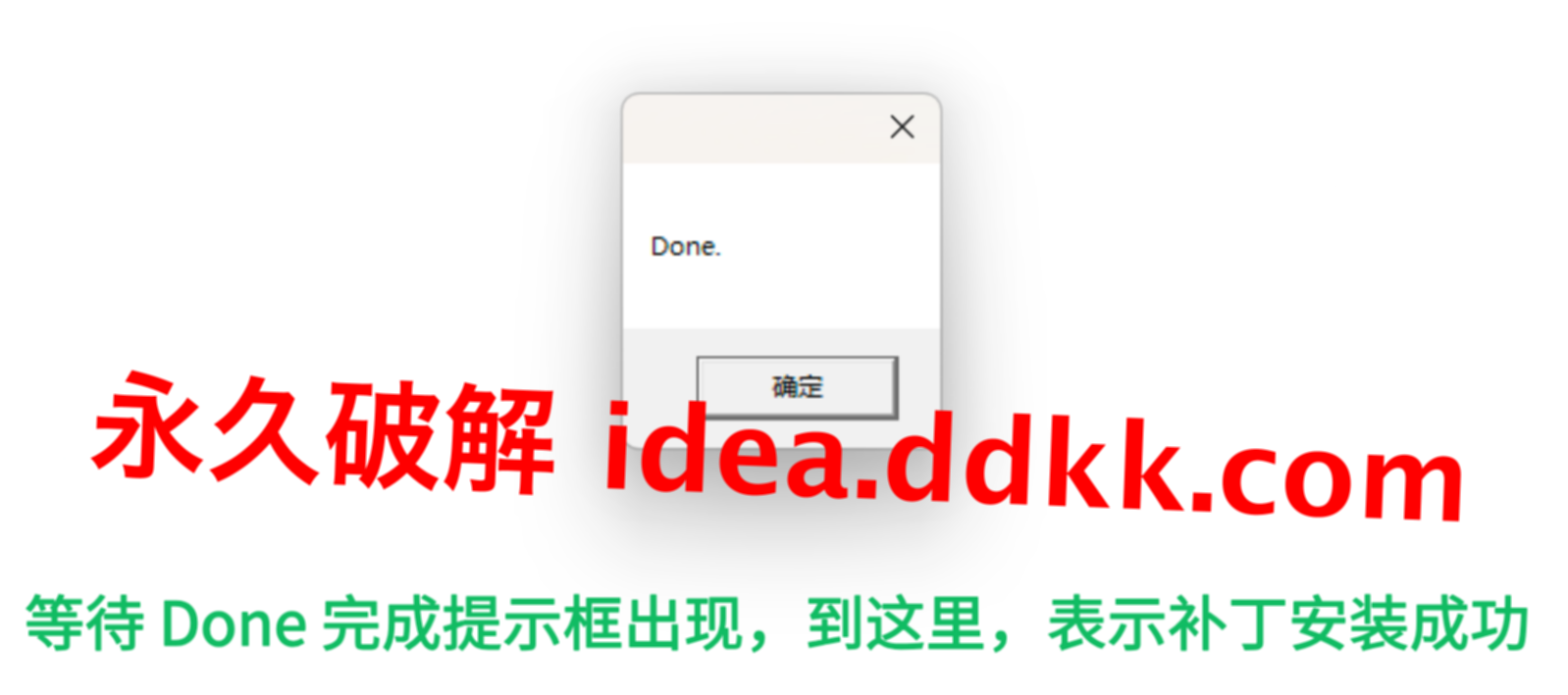 Done出来才叫补丁装成功了,之前那些步骤都是铺垫,这个框才是真正的节点信号,看到它就放心了,接着去填激活码。